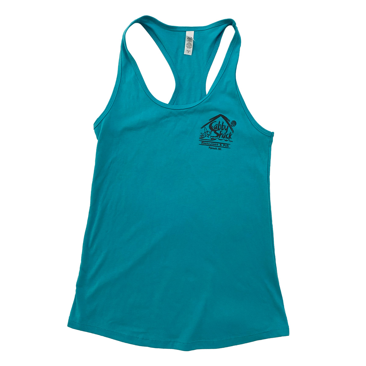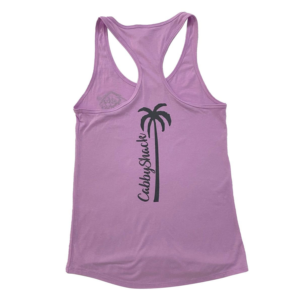 Available in purple or teal, this women's tank features the CabbyShack logo on the left chest and a palm tree on the back.
